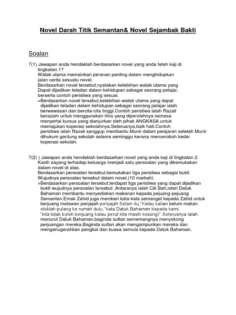 LATAR DARAH TITIK DI SEMANTAN. BM PT3 KARANGAN CONTOH 6. Komponen sastera dan novel BM bahasa melayu.